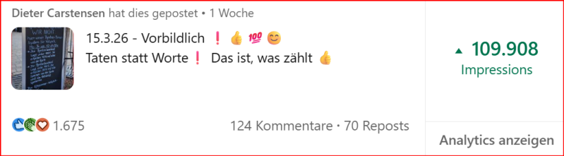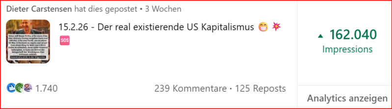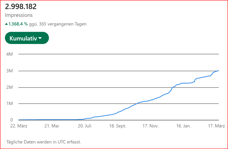Meine LinkedIn Artikel erreichten in den letzten 365 Tagen, wie weiter unten ersichtlich, weltweit über eine Million Leserinnen und Leser